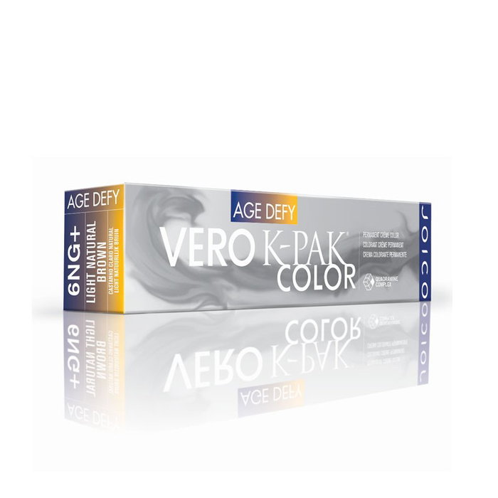 Colorante en crema permanente. Restaura la sensación y el look glorioso de la juventud con Vero K-PAK Age Defy, nuestro primer colorante de cabello que ha probado que puede revertir los principales signos de envejecimiento del cabello en la textura, el brillo y el color.