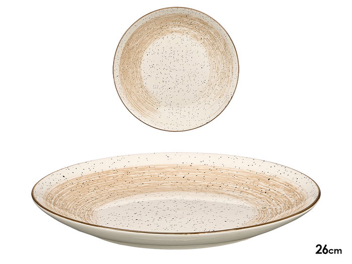 Vessia Plato Llano Patinado, Marrón y Blanco, 26 cm de Diámetro, Cerámica de Porcelana (Set de 24)