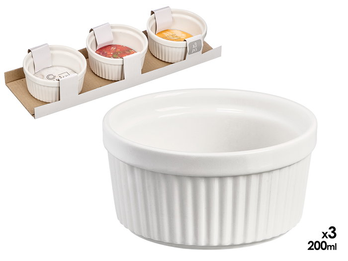 VESSIA Set de 3 Tarros para Salsa de Porcelana, 200 ml, Blanco, Dimensiones: 34 x 5.8 x 10 cm (Set de 24)