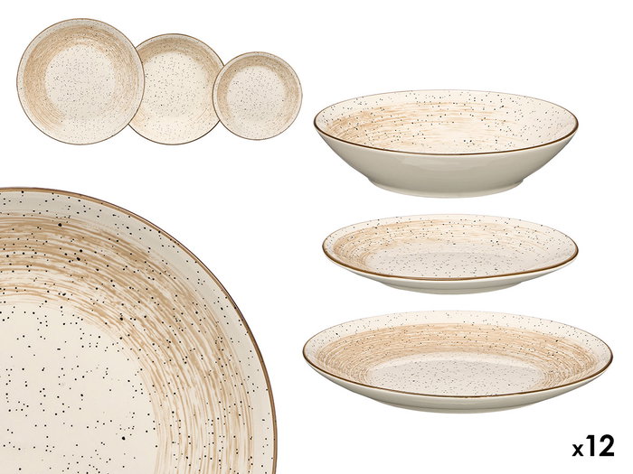Vessia Vajilla 12 Piezas Patinada en Color Marrón y Blanco, Cerámica (Porcelana) - 27x15x27 cm (Set de 2)