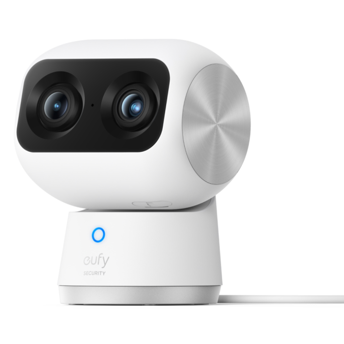 Eufy Indoor Cam S350 Cámara de Seguridad Doble 4K UHD con Zoom 8x, PTZ 360°, IA para Personas y Mascotas, Wi-Fi Doble Banda, Interior, Inalámbrica, Escritorio, Negro/Blanco