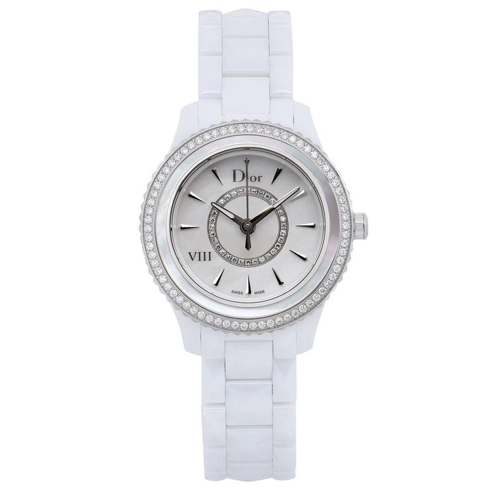 Christian Dior, VII, Reloj de cerámica con correa de cuarzo, Blanco, 33 mm, Para mujeres