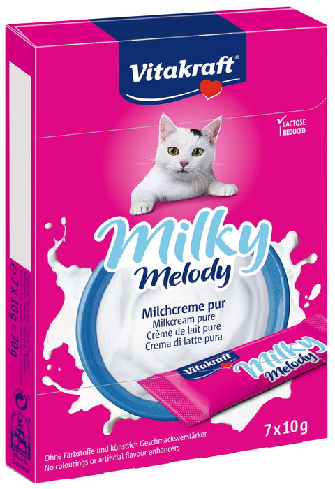 Vitakraft Milky Melody Crema de Leche para Gatos, Sabor Leche, 11x70gr, Suplemento Dietético con Taurina