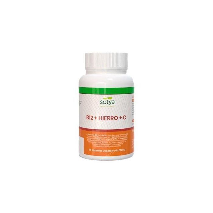 SOTYA Vitamina B12 Hierro Vitamina C 60 Cápsulas | Apoya Sistema Inmune Energía y Reduce Cansancio