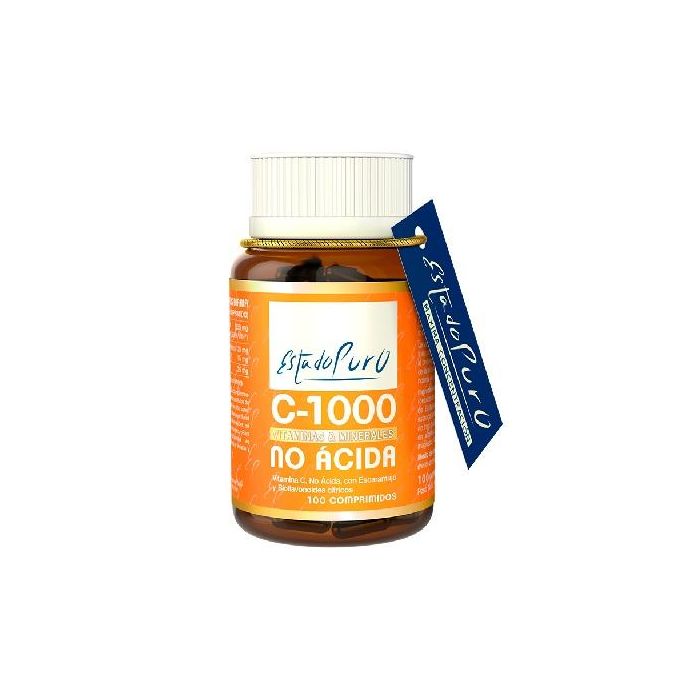 Dosis diaria (1 comprimido): Vitamina C (ascorbato cálcico) 1153,80 mg – que aporta Vitamina C 1000 mg (1250% VRN) Complejo de Bioflavonoides cítricos 25 mg – que aporta Hesperidina 15 mg Extracto seco de Escaramujo 25 mg. Agente de carga (celulosa microcristalina) y estabilizante (sorbitol), antiaglomerantes (estearato de magnesio y dióxido de silicio).