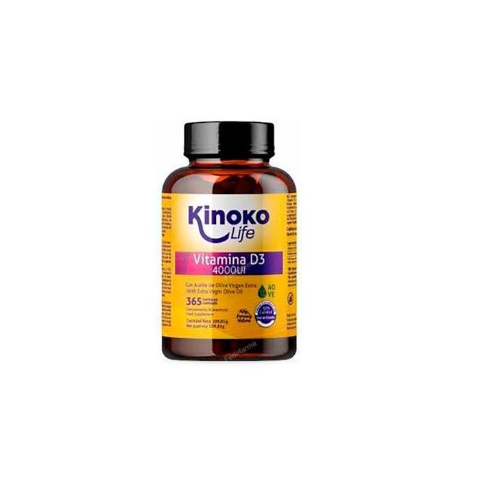 KINOKO LIFE Vitamina D 4000 UI 365 Cápsulas Blandas - Alta Biodisponibilidad, Aceite Oliva Virgen Extra, Sin Gluten, Lactosa, GMO