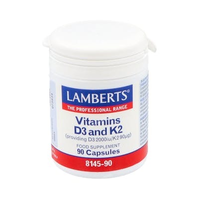 Indicaciones: Como fórmula clínicamente investigada, ambas vitaminas se proporcionan en sus formas más eficaces. La investigación ha establecido que el cuerpo absorbe la vitamina K2 mejor que la K1. La vitamina K2 (menaquinona) existe en dos formas: MK-4 sintética y MK-7 natural. Múltiples estudios han afirmado que la forma natural de MK-7 es más biodisponible que la MK-4 sintética y, por lo tanto, Lamberts utiliza 96 % de MK-7 pura, natural y de espectro completo, derivado de la proteína de garbanzo. Cápsulas pequeñas y fáciles de tragar. Producto apto para vegetarianos.