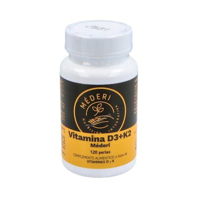 Indicaciones: Combina dos nutrientes claves para el normal mantenimiento del sistema óseo, cuya acción se refuerza de forma sinérgica. Para asegurar una óptima absorción de estas vitaminas liposolubles, las vitaminas D y K se presentan en una matriz grasa de aceite de oliva virgen extra. Las perlas son pequeñas y muy fáciles de tragar. El complemento alimenticio Vitamina D3 con K2 de Mederi es un producto diseñado para ayudar al normal mantenimiento óseo, gracias a su fórmula única combina dos vitaminas esenciales para el cuerpo humano, la vitamina K2 y D3. La vitamina K2 puede ser útil para ayudar a mantener los huesos en condiciones normales. Además, la vitamina D3 es importante para la absorción y utilización normal del calcio y fósforo en el cuerpo, lo cual puede ayudar a la formación y mantenimiento de los huesos. Pero los beneficios de Vitamina D3+K2 no se limitan solo a la función ósea. También ayuda al funcionamiento normal de los músculos y del sistema inmunitario. En resumen, el complemento alimenticio Vitamina D3+K2 de Mederi es una excelente opción para aquellas personas que desean un apoyo óseo, muscular e inmunológico.