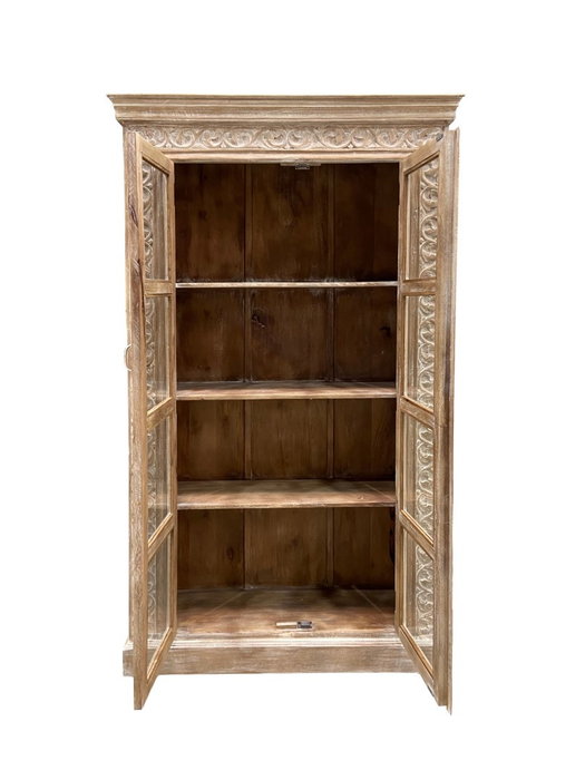 DKD Home Decor Vitrina Item Home Blanco 44 x 210 x 120 cm Mango Tallado a Mano Estilo Decape