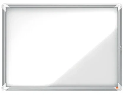 Vitrina de exteriores Nobo para 8 hojas A4 con superficie blanca magnética. Vitrina con cerradura para exteriores con superficie blanca magnética de borrado en seco y puerta de seguridad de cristal de 4 mm de grosor. Ideal para mostrar los documentos con seguridad bajo cualquier condición climática. Mantiene los documentos secos y seguros en ambientes exteriores. Optimizada para diversas hojas tamaño A4 Bisagras laterales. Se suministra con los anclajes a la pared y dos llaves. Tamaño 8 × A4. Dimensiones externas: 692 × 972 × 45 mm.
