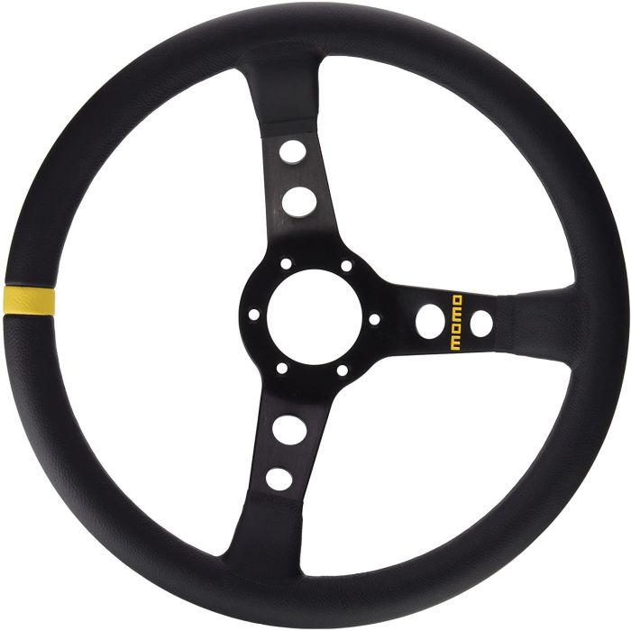 El Volante Racing MOD.07 de la marca MOMO es un componente diseñado para la conducción deportiva, fabricado en Italia, país reconocido por su excelencia en accesorios de automovilismo. Este volante destaca por su acabado en piel lisa negra, que proporciona un tacto suave y un agarre seguro, ideal para pilotos que buscan precisión y control durante la conducción. Con un diámetro de 35 cm, presenta unas dimensiones equilibradas que facilitan maniobras rápidas y cómodas sin sacrificar la estabilidad al volante. Su diseño ergonómico y la calidad de los materiales emplean una combinación perfecta entre funcionalidad y estética, características propias de los volantes profesionales para competición o uso en simuladores de altas prestaciones. Además, el color negro aporta un aspecto sobrio y versátil que se integra fácilmente en cualquier interior deportivo, manteniendo la elegancia típica de MOMO. Este volante es compatible con distintos sistemas de montaje, lo que lo convierte en una opción adecuada para entusiastas del motor que desean maximizar el rendimiento y la sensibilidad en la conducción. En conjunto, el Volante Racing MOD.07 representa una pieza robusta y fiable, destinada a mejorar la experiencia de conducción por su calidad constructiva y acabado de lujo, siendo una elección acertada para usuarios que valoran la precisión y el diseño italiano en complementos de competición.