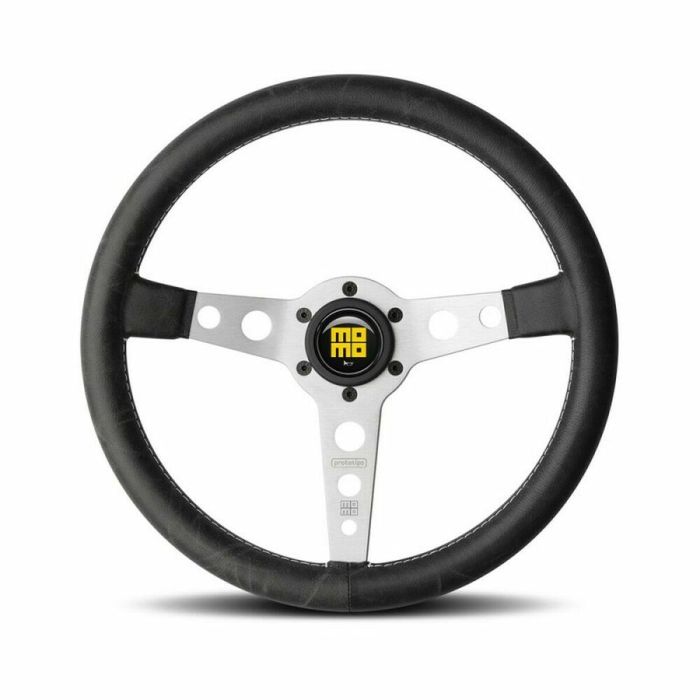 Momo Volante Prototipo Heritage 350 Sil MOMVPROHERIT35SR Piel Negra Costuras Blancas Brazos Plata 350mm Universal Hecho en Italia