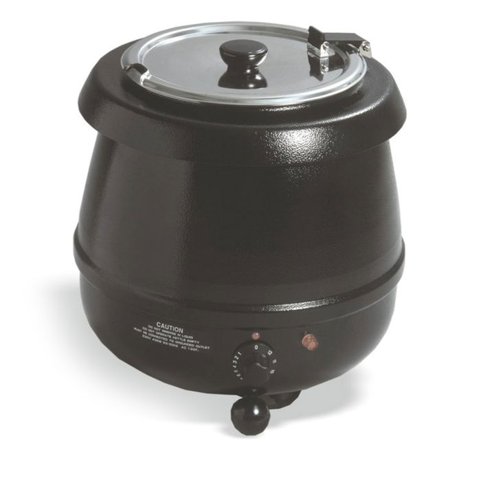 - Características: Cuba interior de acero inoxidable.Tapa transparente de policarbonato con orificio para cacillo. Cuerpo exterior de aluminio con baño epoxi. Termostato regulador.