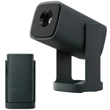 El exclusivo diseño Gimbal de 360° permite maniobrar libremente la lente en toda su extensión. Esto permite al proyector Cube 1 proyectar películas en una pared, en un ático inclinado o incluso en el techo, lo que favorece una visualización cómoda mientras se está tumbado. Este mecanismo también sirve para proteger la cámara (cuando está plegada) durante el transporte. Este diseño facilita la colocación de la montura sin necesidad de trípodes o almohadillas adicionales.