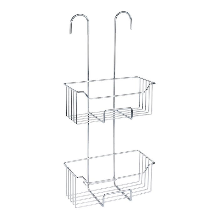 Cesto para la ducha de doble piso, modelo milo. práctico cesto de ducha para colgar con 2 estantes. fabricado en acero inoxidable con acabado plateado brillante. incluye tapas de plástico transparente para proteger los azulejos de posibles arañazos. dimensiones: 25 x 14 x 55 cm