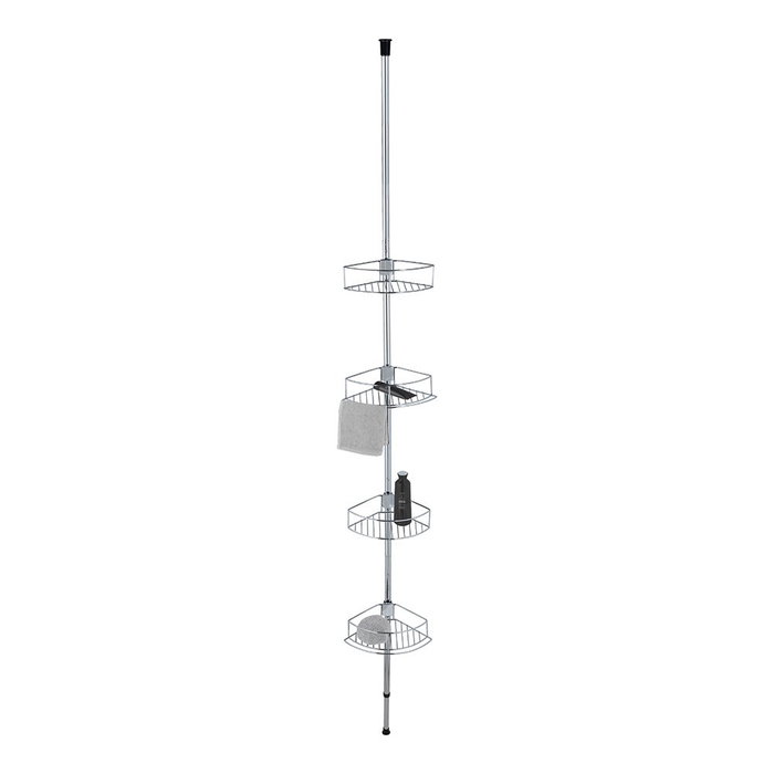 Rinconera telescópica de acero inoxidable, modelo dolcedo, cuenta con 4 cestas de acero inoxidable de 31 x 23 x 7 cm. barra telescópica de ø2,2 x 65- 275 cm. ideal para colocar en la cabina de ducha, esquina de la bañera o en el cuarto de baño