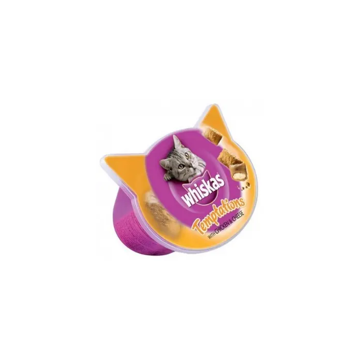 Disfruta de Whiskas Temptations sabor Pollo, el snack perfecto para consentir a tu gato. Cada envase contiene 6 unidades de 60 gramos, ideales para ofrecer como recompensa o simplemente para compartir un momento especial con tu mascota. Elaborado con ingredientes de alta calidad, este alimento complementario está diseñado para deleitar el paladar de tu felino y proporcionarle una experiencia irresistible.