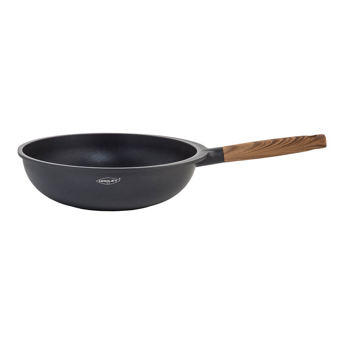 Wok aluminio fundido c/tapa. mango color madera 30cm nature oroley