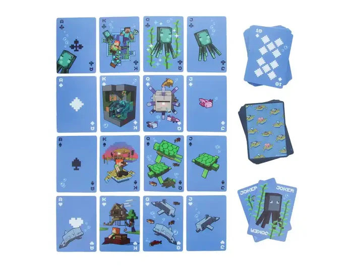 Las Waterproof Playing Cards Minecraft son el accesorio perfecto para los fans del universo pixelado más famoso del mundo. Con un diseño inspirado en Steve, Alex y los elementos icónicos del juego, esta baraja combina entretenimiento y resistencia en un formato ideal para cualquier ocasión. Fabricadas en material impermeable, las cartas son duraderas y resistentes al agua, lo que las hace perfectas para usar en exteriores, viajes, piscina o camping sin preocuparse por salpicaduras o desgaste. Su acabado robusto permite una mayor vida útil frente a las barajas tradicionales. Un producto oficial Minecraft, recomendado a partir de 6 años, ideal como regalo para gamers que quieran llevar la diversión del juego más allá de la pantalla la y disfrutarlo también en formato clásico de cartas.