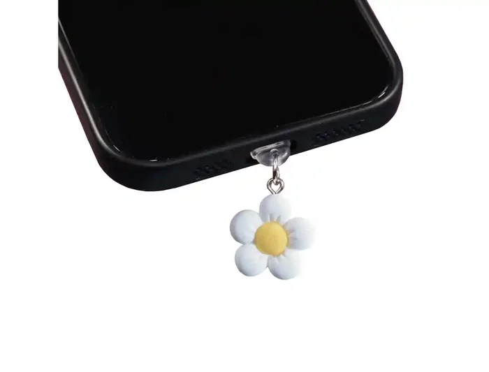 Wondee Charm Funny Protegepuertos Móvil con Colgante Floral Blanco para Tipo-C - Protección Contra Polvo y Decoración para Smartphone