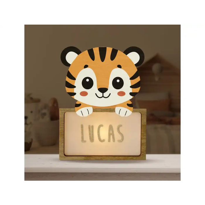 Wondee Lampara de Noche Infantil Personalizable Little Tiger de Madera Sostenible Luz Quit Miedos