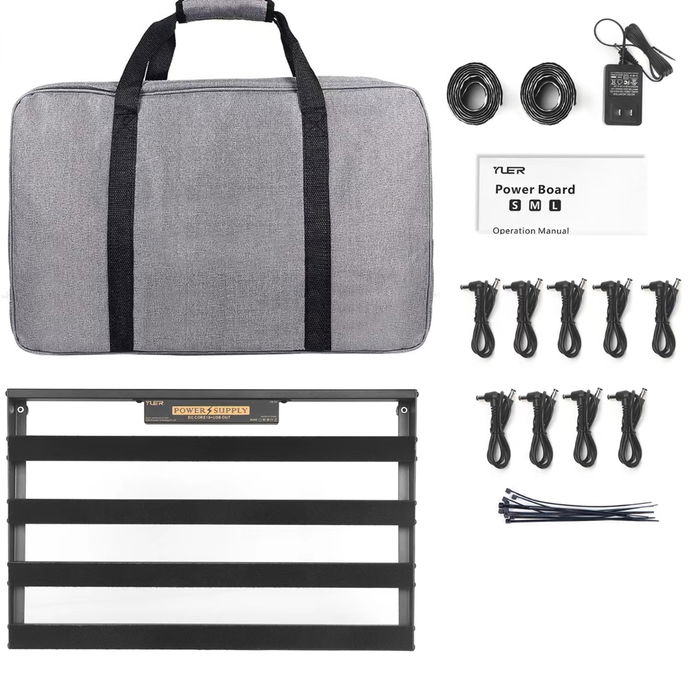 YUER Pedalboard con Fuente de Alimentación de Aluminio, 9 Salidas + 1 USB, Capacidad para 10 Pedales