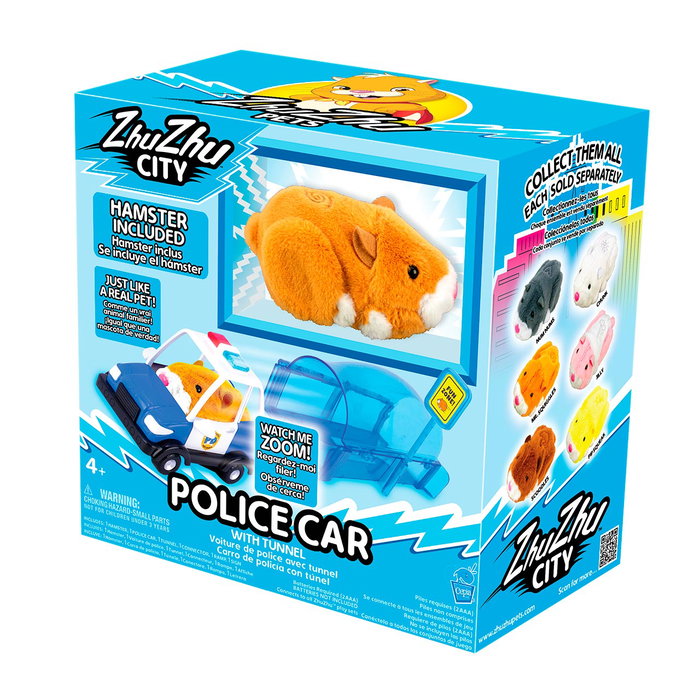 Jazwares Zhu Zhu Hamster Coche de Policía Z1078 - Juguete Interactivo con +40 Sonidos y Comportamientos