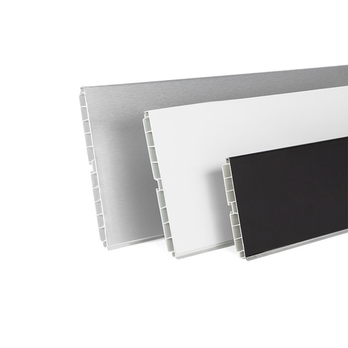 Presentamos el Zócalo PVC/Aluminio-Papel Melamina modelo Zesio, es un rodapiés para muebles de cocina. Está disponible en varios acabados y diferente altura. La venta mínima es de 3 unidades y no se puede hacer por la web. Es por teléfono