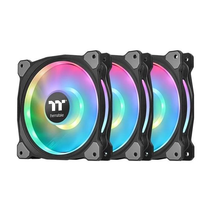 Thermaltake Riing Duo 14 - Pack de 3 Ventilateurs PC 140mm RGB avec Contrôleur USB, Noir - Vitesse 500-1400 tr/min, 60.87 CFM