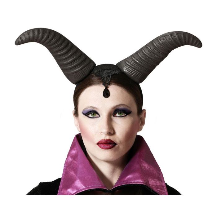 Accessoire de déguisement : Cornes noires de Diabla de 25 cm avec base - Ideal Halloween, créatures fantastiques et fêtes costumées