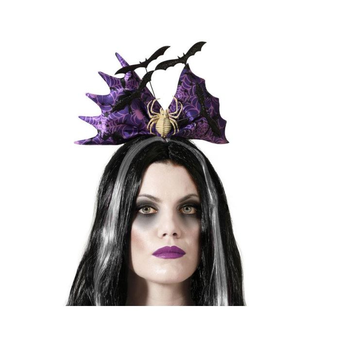 Accessoire tête Mantis avec Toile Rouge Sanglante en Violet - Diadème Halloween Squelette Araignées Chauves-souris pour Déguisement Sorcière et Vampire