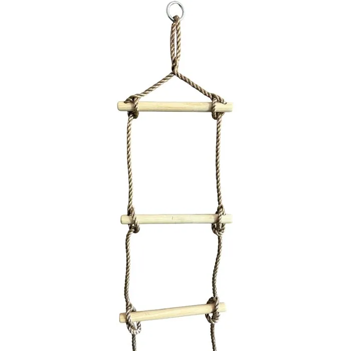 Échelle de corde en bois compatible avec portiques 2,20/2,30 m. Longueur 2,13 m, charge maximale 50 kg. Parfaite pour développer motricité et envie de grimper. Fixation par mousquetons ou anneaux (non inclus).