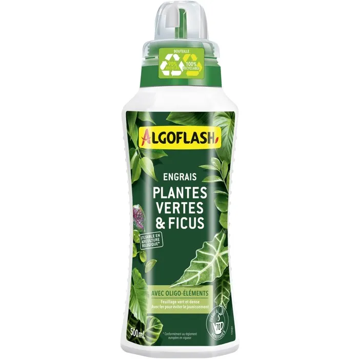 Algoflash Engrais Liquide pour Plantes Vertes et Ficus, 500 ml, UAB