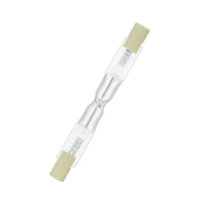 Lampe halogène à double culot avec douille tubulaire.