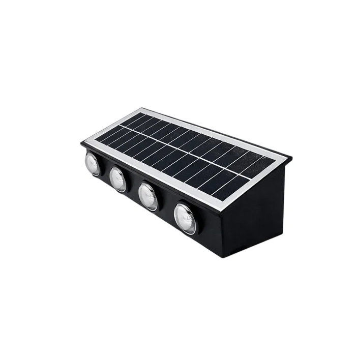 Aplique LED solar diseñado para iluminación exterior eficiente y autónoma. Funciona mediante energía solar, incorporando un panel fotovoltaico de alta eficiencia que carga su batería interna durante el día para operar automáticamente por la noche.Características Técnicas: Potencia: 4.0 W Tecnología LED: Alta eficiencia y bajo consumo Alimentación: Energía solar Batería: Litio recargable 3,7 V Panel solar: Integrado, alta captación de luz Grado de protección: IP65 (resistente al polvo y a chorros de agua) Encendido: Automático (sensor crepuscular) Instalación: Montaje en pared, sin cableado Uso: Exterior (fachadas, jardines, pasillos, patios, entradas) Ventajas: Ahorro energético total (no requiere conexión eléctrica) Fácil instalación y mantenimiento mínimo Iluminación segura y ecológica Alta resistencia a condiciones climáticas adversas Ideal para proyectos de iluminación exterior donde se requiera eficiencia, autonomía y durabilidad.