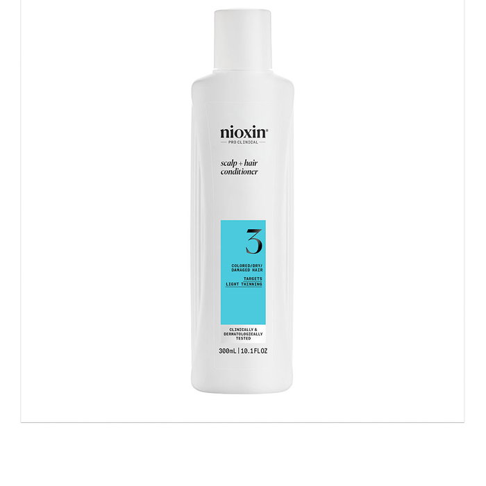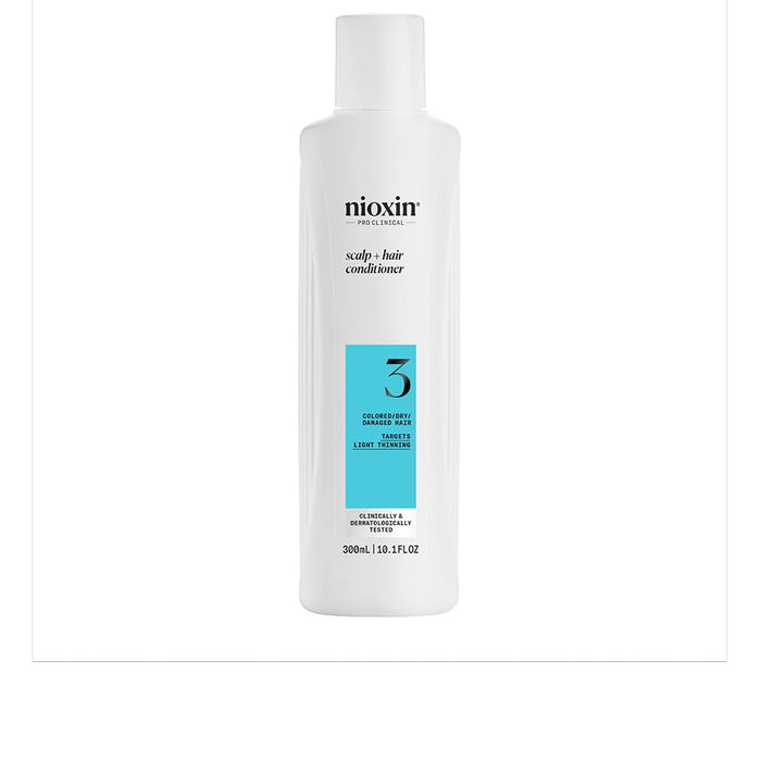 Découvrez Nioxin, leader des soins capillaires professionnels pour des cheveux plus fournis. Le Nioxin Professionals System 3 est un après-shampooing hydratant spécifiquement formulé pour les cheveux colorés et abîmés présentant des signes de légères pertes. Validé par des études cliniques et dermatologiques, il améliore l'élasticité et la densité capillaire.