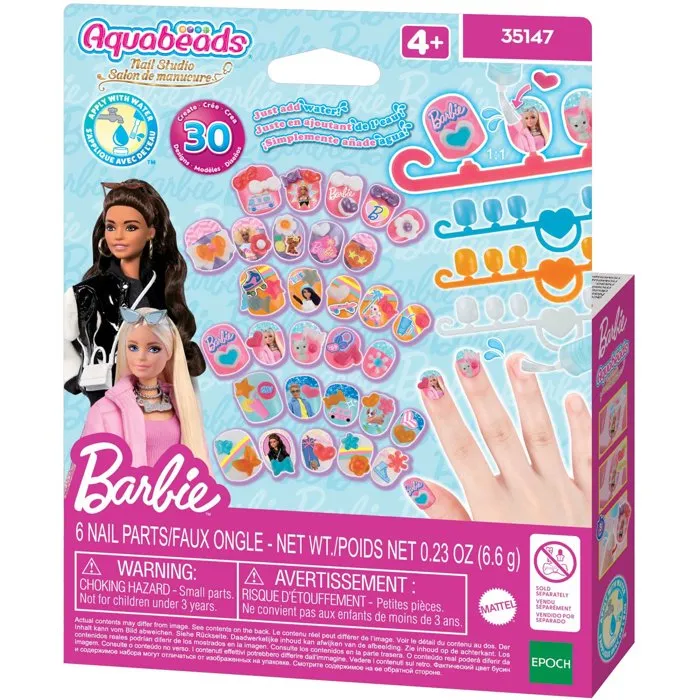 Aquabeads Recharge Kit Ongles Décorés Barbie - 40 Ongles avec Autocollants et Accessoires Brillants - À Partir de 4 Ans