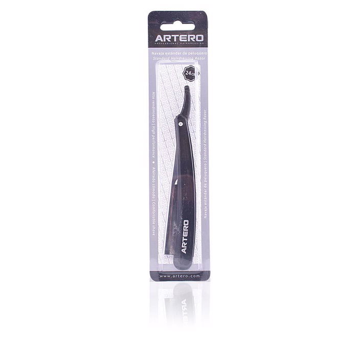 Couteau standard professionnel Artero, un outil de coiffure classique, conçu pour un rasage efficace et agréable. Équipé de lames en acier inoxydable à changer, il est idéal pour un usage unique et professionnel.