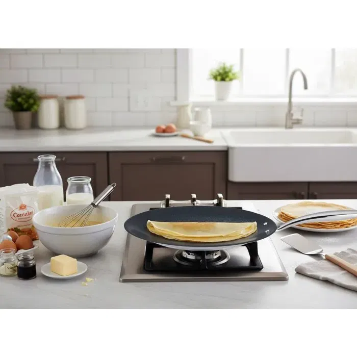 - Composition du lot: Crêpière 28 cm manche fixe acier inoxydable 18/10