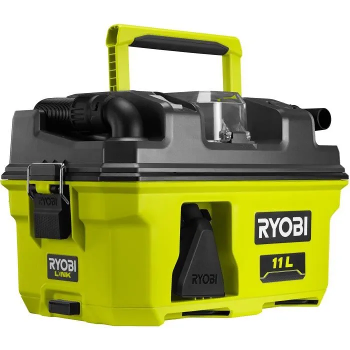 Ryobi Aspirateur d'atelier 18V ONE+ RV1811-0 - 11,8 kPa, collecteur 11 L, filtre HEPA H12 - Compatible avec outils 18V ONE+, livré avec accessoires
