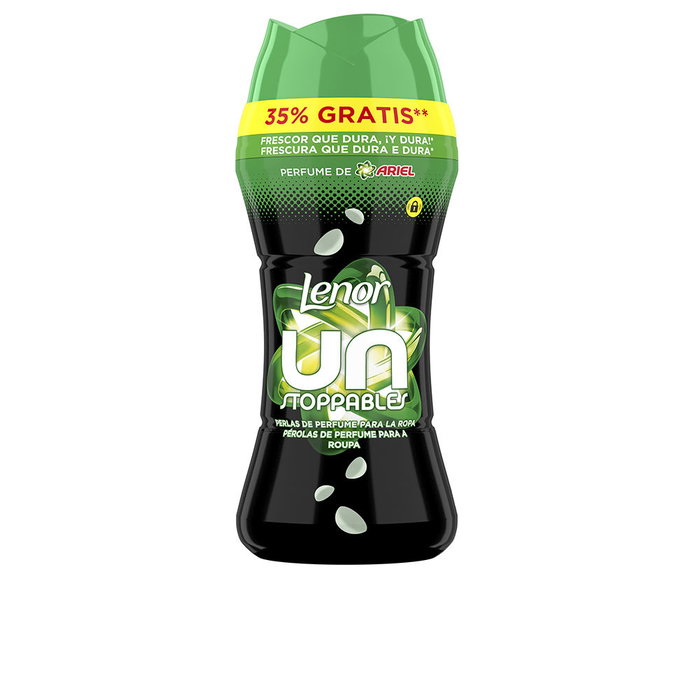 Perles parfumées UNSTOPPABLES par Swiffer (marque: Lenor). Cet assouplissant et intensificateur de parfum offre une touche de fraîcheur durable entre les cycles de lavage. Vous pouvez facilement ajuster l'intensité du parfum selon vos préférences en modulant la quantité de perles utilisée. Grâce à cet assouplissant Lenor, vos vêtements retrouvent une douceur et une fraîcheur optimales. Il délivre un parfum délicat et enveloppant composé de notes de freesia, de rose et de violette.