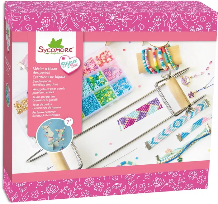 - Description du produit: Dans cette boite cadeau XL, retrouve 1 métier à tisser et tout le nécessaire pour réaliser de magnifiques bijoux tendances. Contenu de cette boîte : perles rocaille, perles heishi, charms, accessoires de bijoux, boîte à compartiments pour ranger les perles, rubans, fils de nylon, cordon suédine, fil élastique, pince à bijoux, porte bijoux en bois, métier à tisser bois et métal, aiguille pour tisser et 1 livret pas à pas.