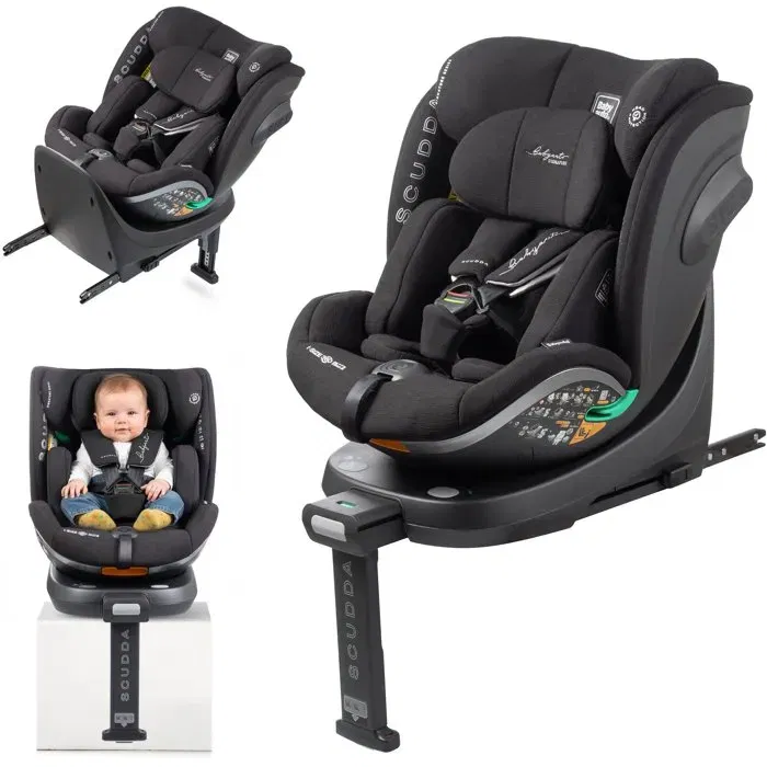 Babyauto SCUDDA Siège auto pivotant Groupe 0/1/2/3 (40-150 cm) i-Size - Inclinable avec jambe de force et réducteur - Anthracite