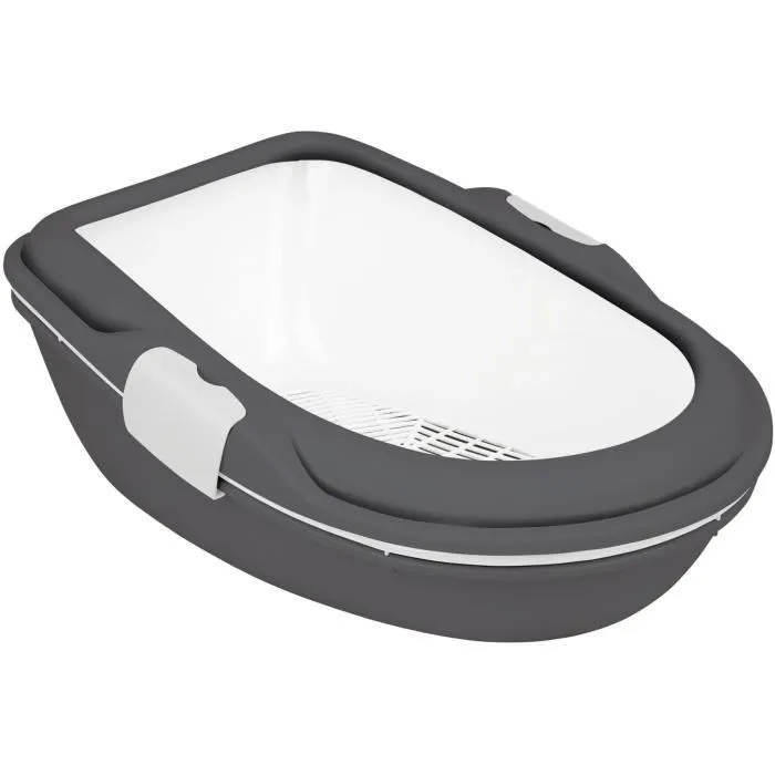 TRIXIE - Primo XXL : Ce bac a litiere en plastique est équipé de fermetures Easy Click pour une utilisation facile. Disponible en couleur gris/blanc, il est parfait pour les grands chats.
