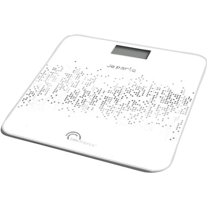 La balance électronique parlante Voice de LITTLE BALANCE est idéale pour un contrôle précis de votre poids. Avec sa fonction vocale réglable, vous pouvez écouter votre poids facilement. Son grand écran LCD et son grand plateau en verre trempé offrent une lecture facile et un confort optimal.