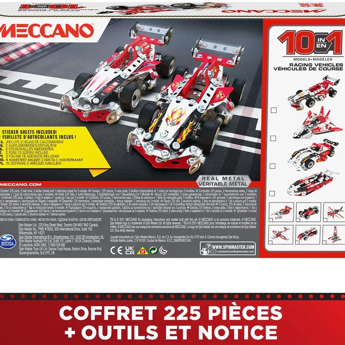 Bandai Meccano APM20104 - Coffret de construction Véhicules de course 10 en 1, 225 pièces en métal et plastique, jeu éducatif pour enfants dès 8 ans