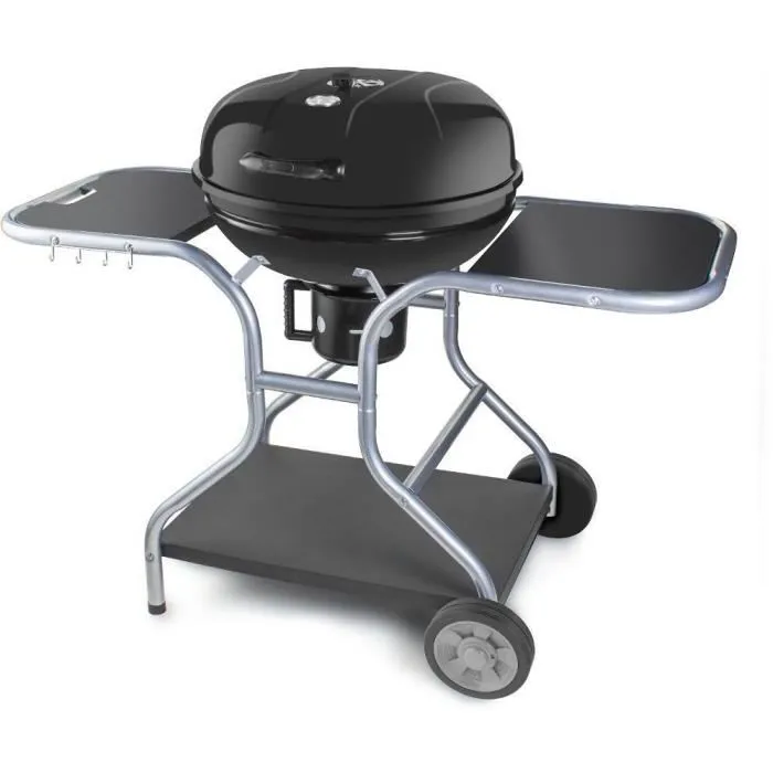 Le barbecue au charbon de bois FIELDMANN FZG 1014 offre une surface de cuisson de 54 cm et des dimensions de 126 x 62 x 90 cm. Avec un thermometre intégré et des roulettes pour un déplacement facile, il est parfait pour des grillades en plein air. Sa construction en métal assure durabilité et stabilité.