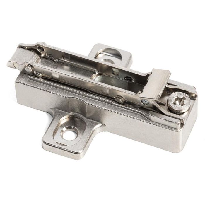 Las bases DOMI tipo avión permiten fijar las bisagras al mueble con un sistema de enganche rápido clip, garantizando un montaje sencillo además de firme.