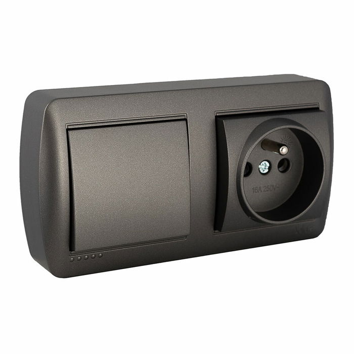 Base double Prise + Interrupteur Solera Mural 2p+t 250 V 16 A Graphite