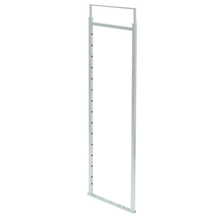 Hauteur réglable de 1693 à 1993 mm. Profondeur de 497 mm. Finition gris métallisé.